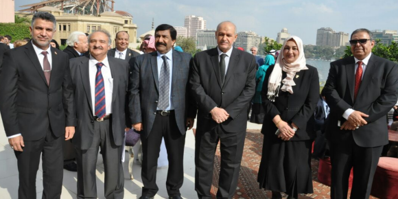 مع الاستاذ وليد الموسوي الوكيل الأقدم لوزارة التجارة العراقية ممثل العراق والملحقية التجارية في جمهورية مصرالعربية والمستشار التجاري / الاستاذ حيدر الكرعاوي مندوب العراق في مجلس الوحدة الاقتصادية العربية